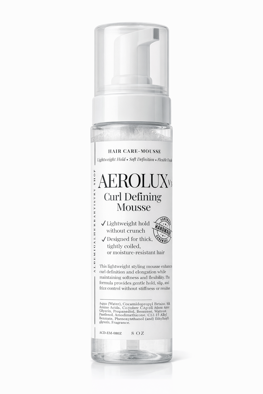Aerolux delivers soft-to-medium, memory-driven hold that guides curls into clumps, smooths frizz, and supports stretch while keeping hair light, touchable, and shiny.