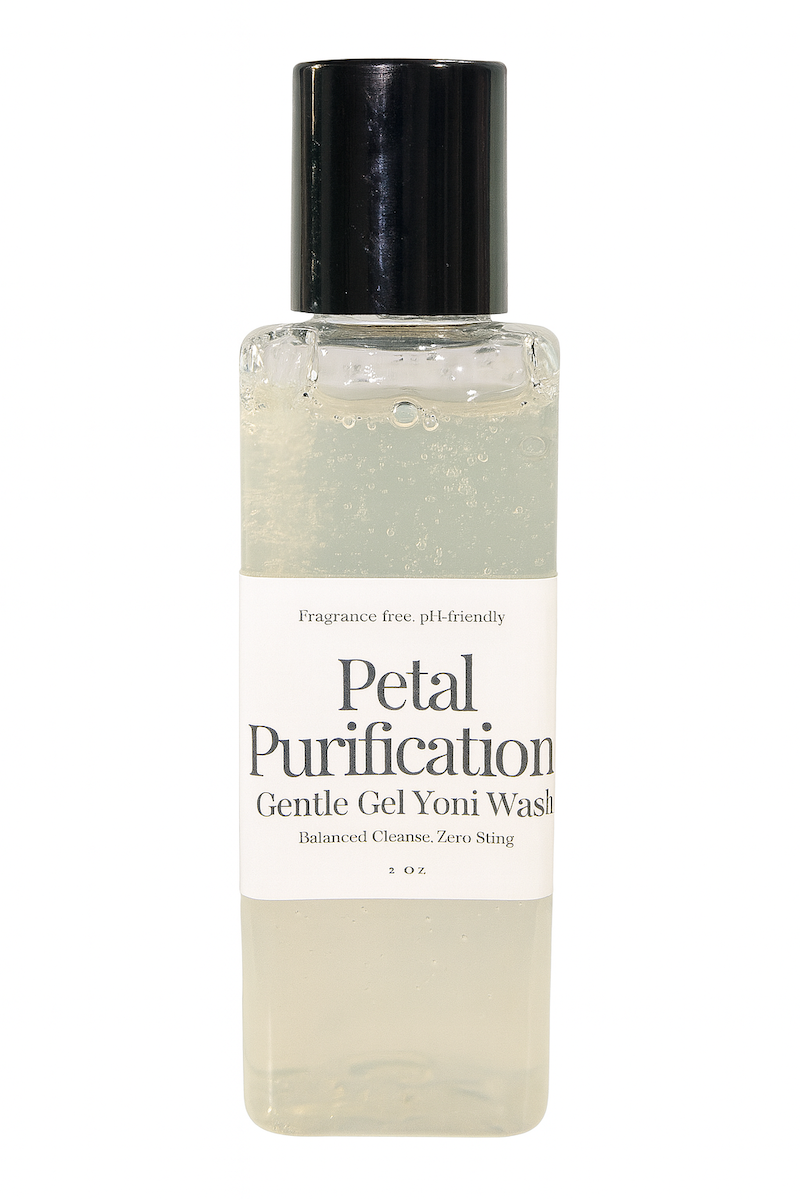 A foaming gel, pH-balanced (≈4.0–4.5) cleanser crafted for the external intimate area. Petal Purification uses a sulfate-free blend of Cocamidopropyl Betaine + Decyl Glucoside cushioned with glycerin, propanediol, and panthenol to cleanse without sting, tightness, or fragrance. A soft hydroxyethylcellulose gel base gives slip and easy rinse-off—leaving skin fresh, comfortable, and calm.